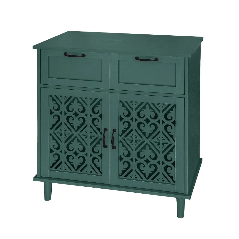 2 Door 2 Drawer Cabinet, American Furniture, Suitable For Bedroom, Living Room, Study – Dark Green