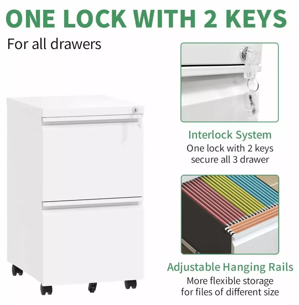 - Privacy SecurityThe 2 drawer file cabinet with wheels is equipped with 2 Keys. 1 lock secures all three drawers. It is the best choice for office and personal use. keeping your personal belongings and documents safe when you leave the office or home.