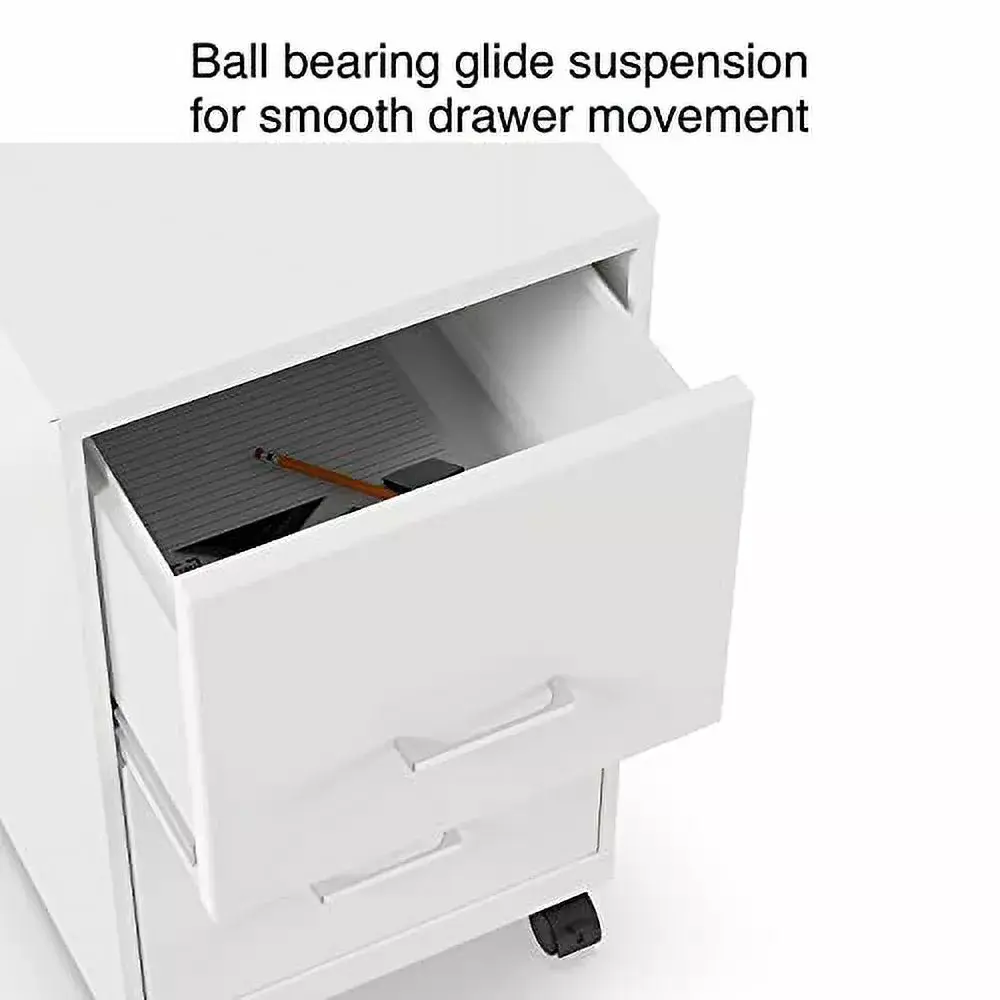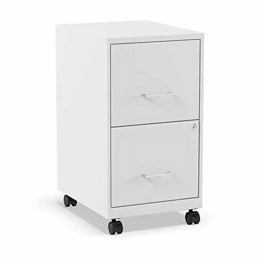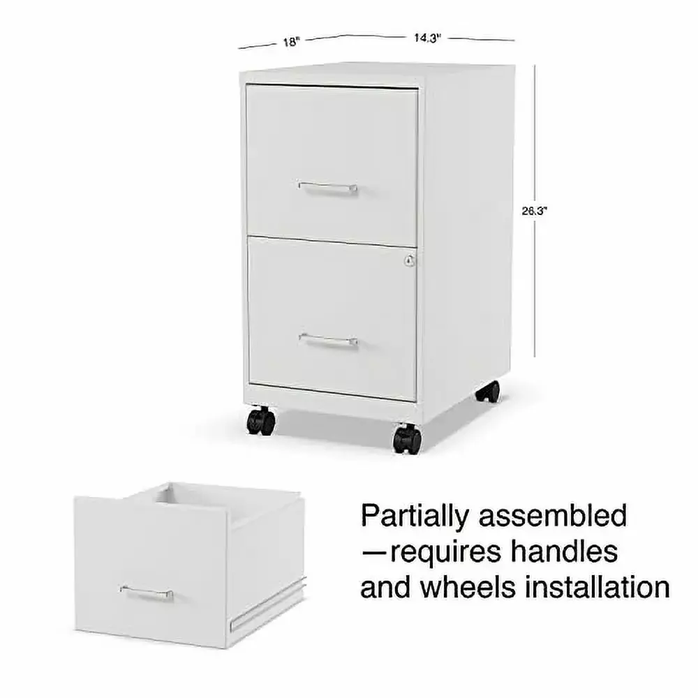 This file cabinet has two 18-inch drawers with high sides to hold letter-size hanging file folders while also providing space to store office accessories and other essentials. Both drawers pull in and out smoothly and lock for optimum security.
