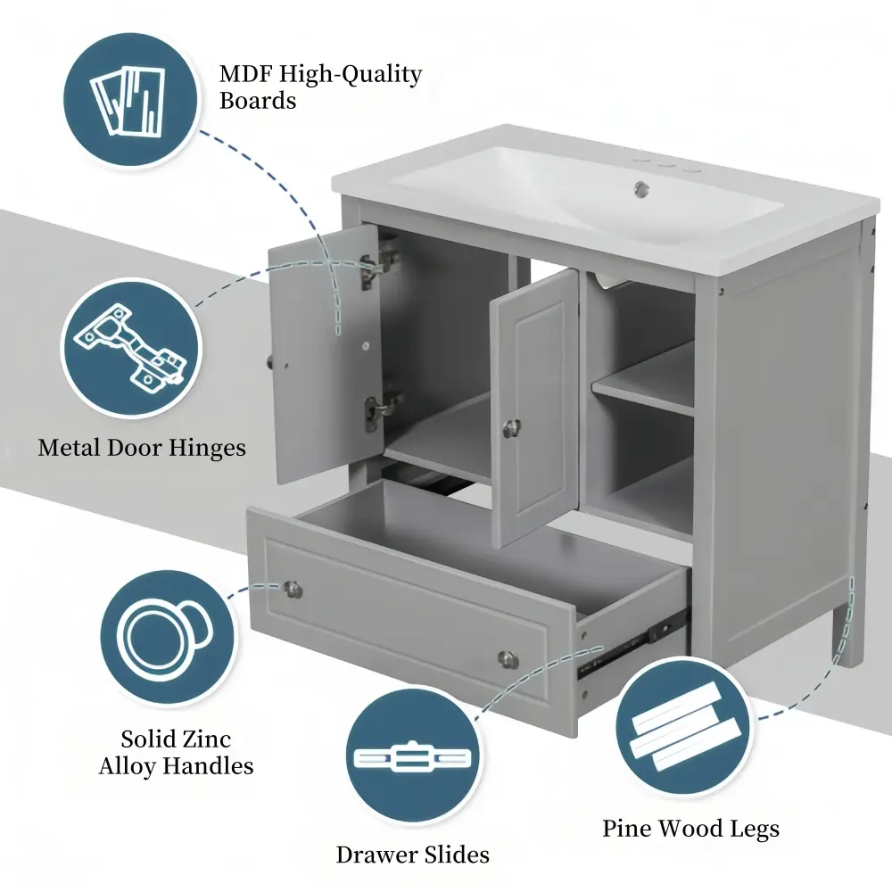 30” Single Bathroom Vanity Cabinet With Ceramic Sink Top#BV-001 ✔ 60-day money-back guarantee ✔ 1-Year Manufacturer Warranty 🛒 Claim Your Exclusive Discount