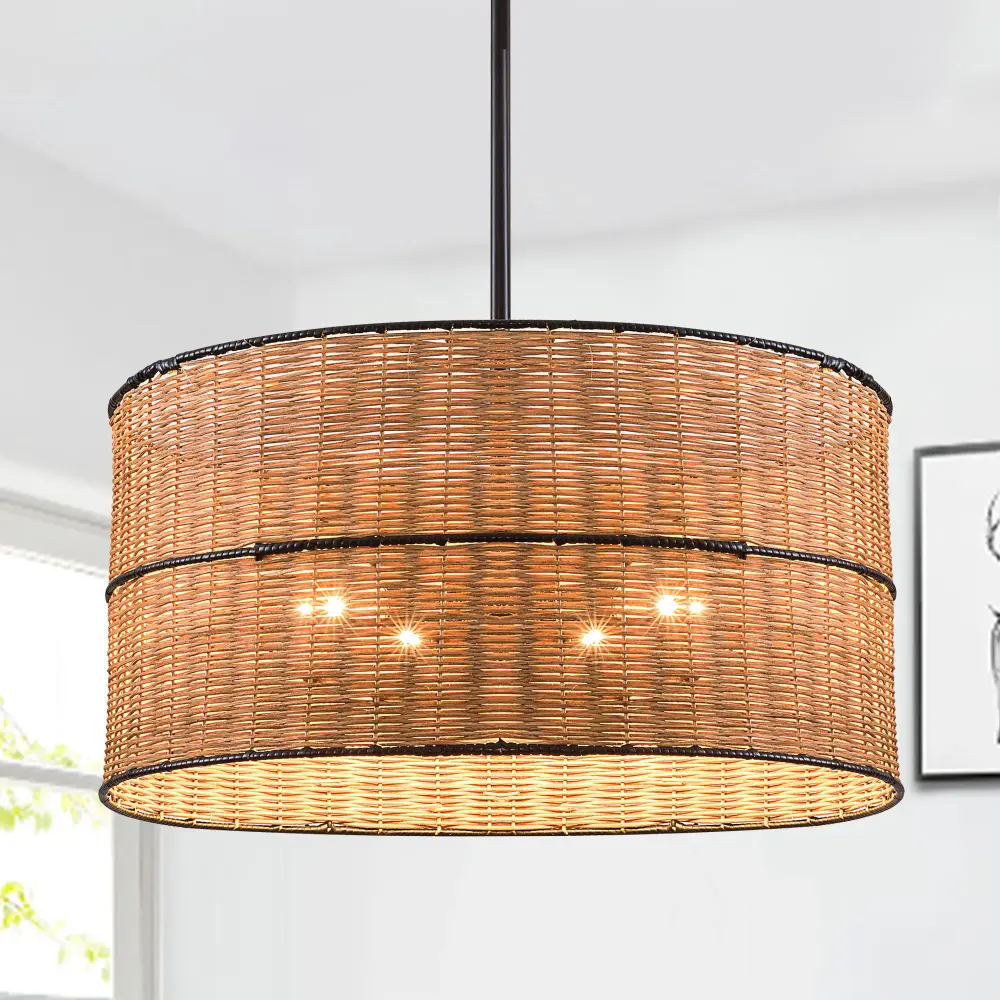 4-Light Drum Rattan Weaving Chandelier For Living Room/Bedroom # ✔ Industry Leading Warranty ✔ Award-Winning Product Design 🛒 Limited Time: 50% Off Today