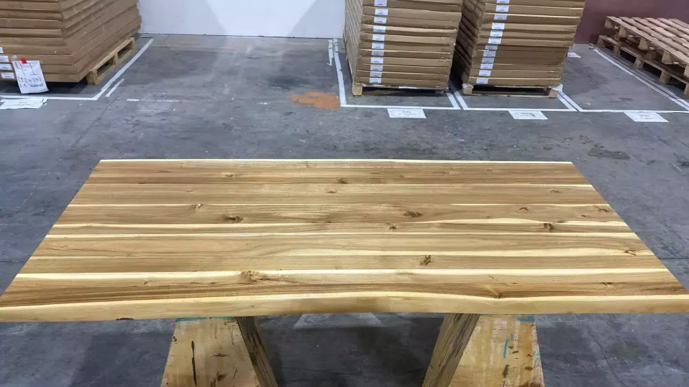 This finely crafted desk is made from the finest exotic teak wood. known for its durability. natural beauty. and unique grain patterns. With two natural live edges. the desk preserves the wood’s original contours. bringing a touch of the outdoors into your workspace. The teak wood’s rich. warm tones and smooth finish create a luxurious and inviting work surface that complements any office decor. Designed for both style and functionality. this desk provides a spacious. ergonomic workspace that encourages productivity while standing. promoting a healthier work lifestyle. Each desk is one-of-a-kind due to the natural characteristics of the live edges. making it not just furniture. but a work of art that enhances your daily work experience. Size shown: 60 x 30 Motorized sit/stand base adjusts from 28 to 42. Widths can vary up to 2" from the selected width due to the handmade nature of our items. Customization is available upon request. Each item is unique. making it a hand-finished furniture item that can’t be found in big box stores. This item includes metal parts from a production partner. Key features: Premium Wood: Made with hardwood teak wood. Eco-Friendly: Sustainable wood from managed forests. Adjustable Height: Stay comfortable with the adjustable height feature. allowing you to switch between sitting and standing positions. Customizable Size: More size options are available. and our standard sizes are larger and cheaper than most sellers. Please add the Custom Size listing to your order if you need a custom size not listed. Important: The tabletop and legs are shipped separately. and basic assembly is required. Some packages may arrive a day or two earlier than others due to this being a multi-part shipment. Since this item is made with reclaimed wood. there is a possibility that a settling crack may appear on arrival or a few weeks after delivery. This is normal and non-structural. We provide a free repair kit to fill any minor cracks in the seam. Pilot holes for leg placement are not pre-drilled. and pre-drilling is not suggested. Screws and instructions are provided. Due to this being a solid wood product. a power tool for secure attachment is always recommended.48 x 24 Live Edge Teak Wood Stand Up Desk. Standing Desk. Adjustable Height Desk