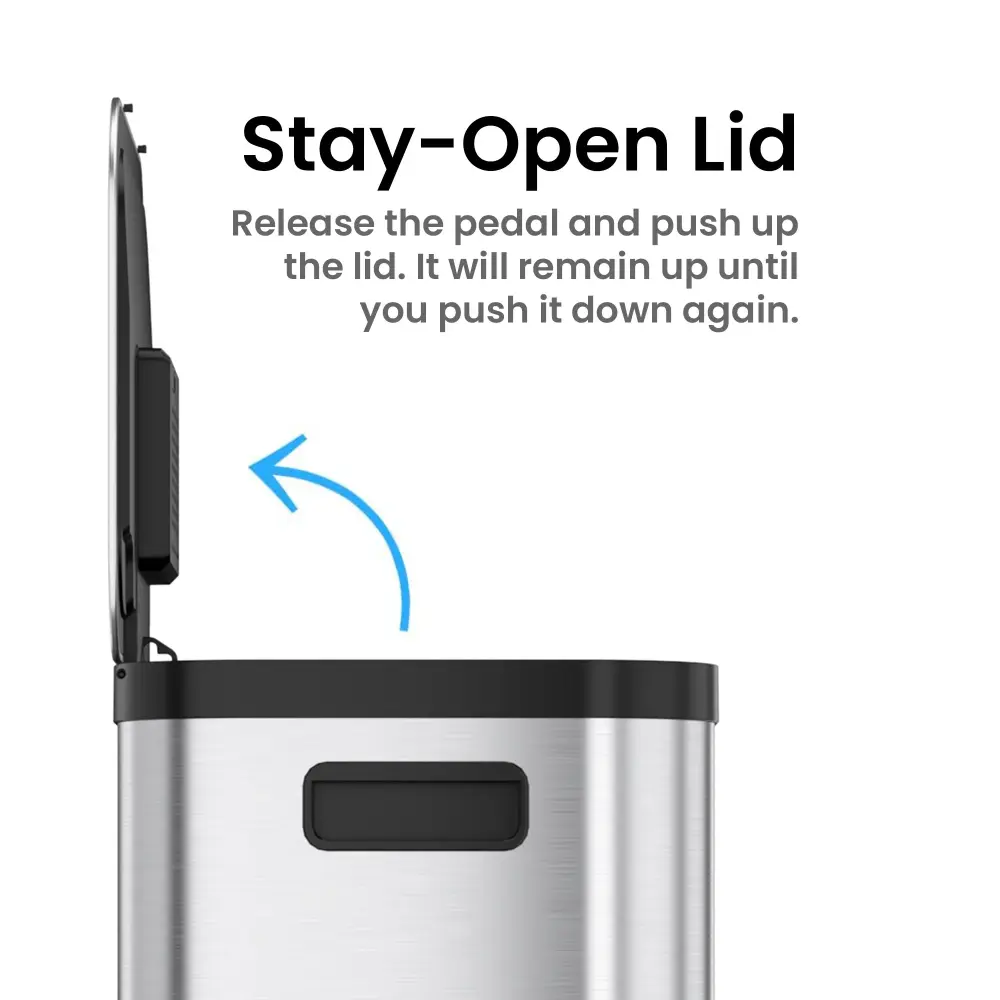 - Hands-Free Step Pedal — Durable, ergonomic pedal provides smooth and hygienic trash disposal.