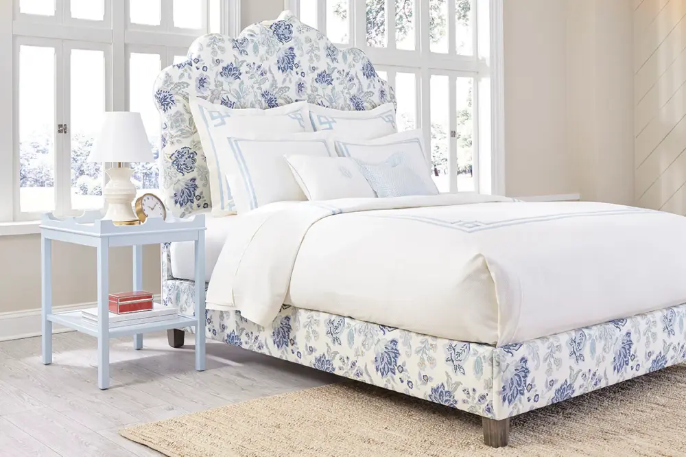 The bed that dreams are made of. Drawing inspiration from Moorish architecture, the Casablanca bed has a dramatic tier of scallops that meet at a high peak. it’s the final visual of luxury. It’s our most dramatic bed and headboard to date! No box spring necessary, the platform bed design only requires your choice of mattress.