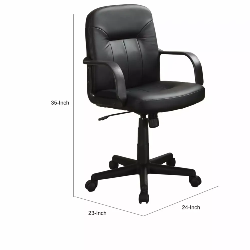 Get The Comfort Needed To Perform All Work Tasks In This Stylish Black Medium-Back Office Leather Chair Fitted With Side Bolster For Added Support. The Chair Has A Medium Back Height With Leather-Look Upholstery. The Padded Seat And Back Make The Chair Comfortable To Sit In For Long Periods Of Time. The Chair Features Adjustable Seat Height And Chair Tilt To Provide An Impressive Level Of Customizable Comfort. A Great Addition To Your Workspace.Includes: 1 Chair Only.- SKU: BNZ34212