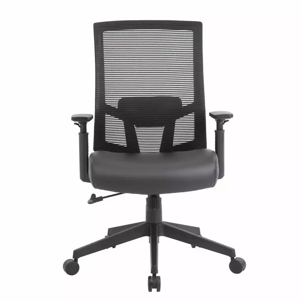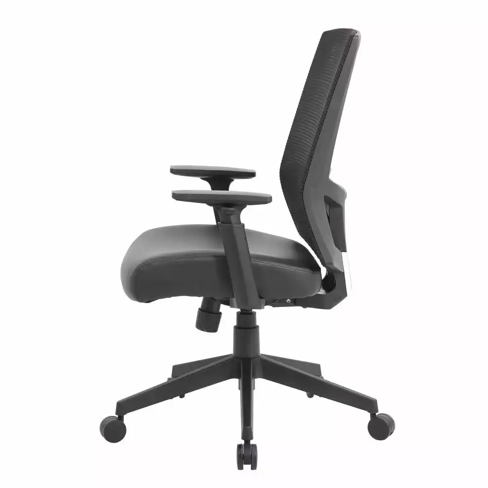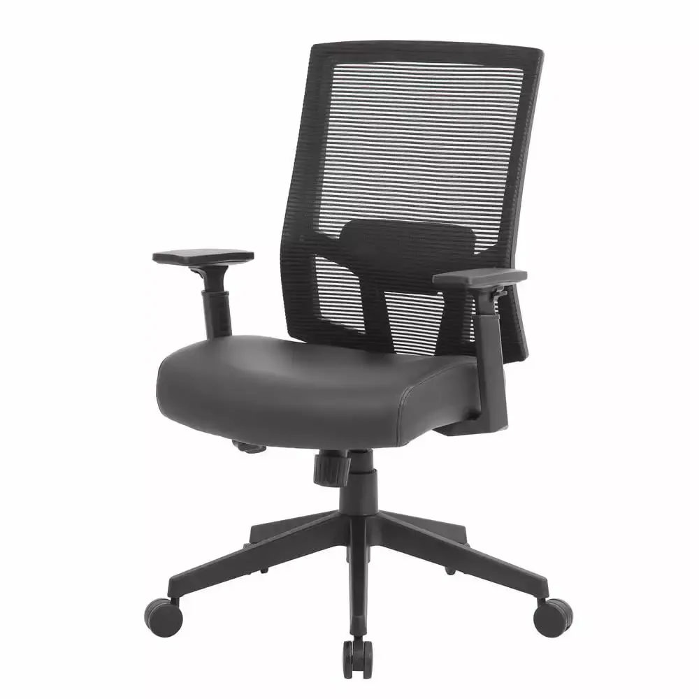 The breathable mesh back task chair is designed with comfort and ease in mind. It’s seat cushion is upholstered in a durable and cleanable vinyl. The chair features a 2:1 synchro-tilt mechanism for added comfort. This allows the backrest and seat to tilt in unison. and it also includes a tilt tension knob which allows you to adjust the tilt tension for optimal support. The chair also features height adjustable arms. a pneumatic gas lift which allows for easily adjustable height and has a maximum weight capacity of 275 lbs. The chair has a 27 nylon base and 2 -inch hooded. double wheel. casters.