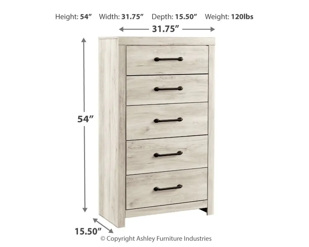 Cambeck – Five Drawer Chest – Whitewash