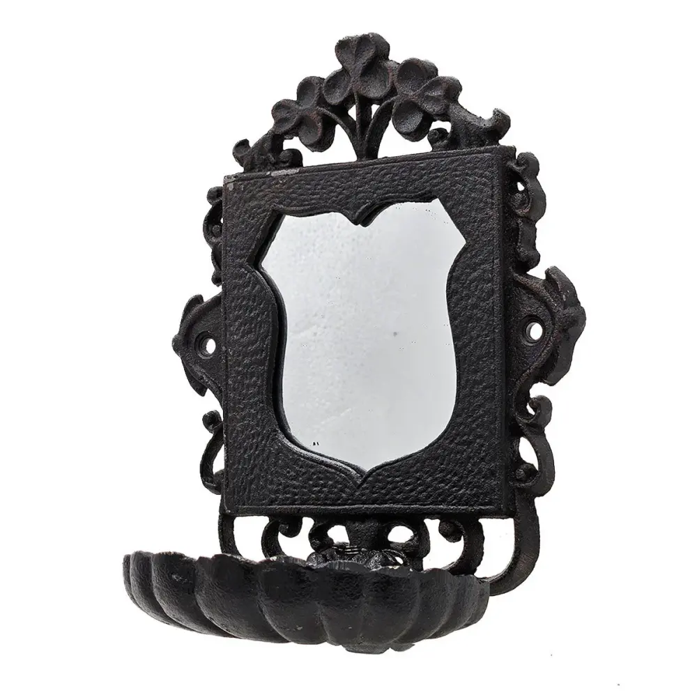 - Ornate Design: Artisanal from sturdy cast iron, the dish showcases an ornate silhouette with intricate scrollwork patterns and a small mirror, creating a sophisticated aesthetic that enhances any room.