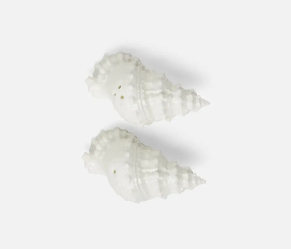 Highly detailed, handcrafted porcelain in the shape of conch shells.
