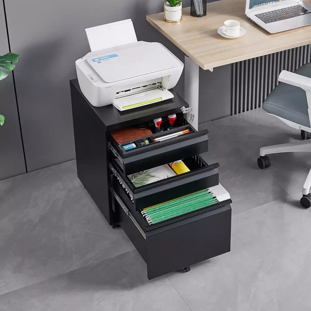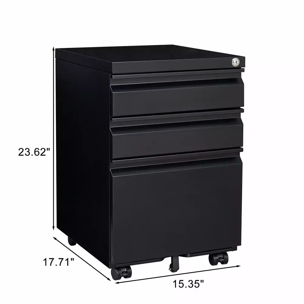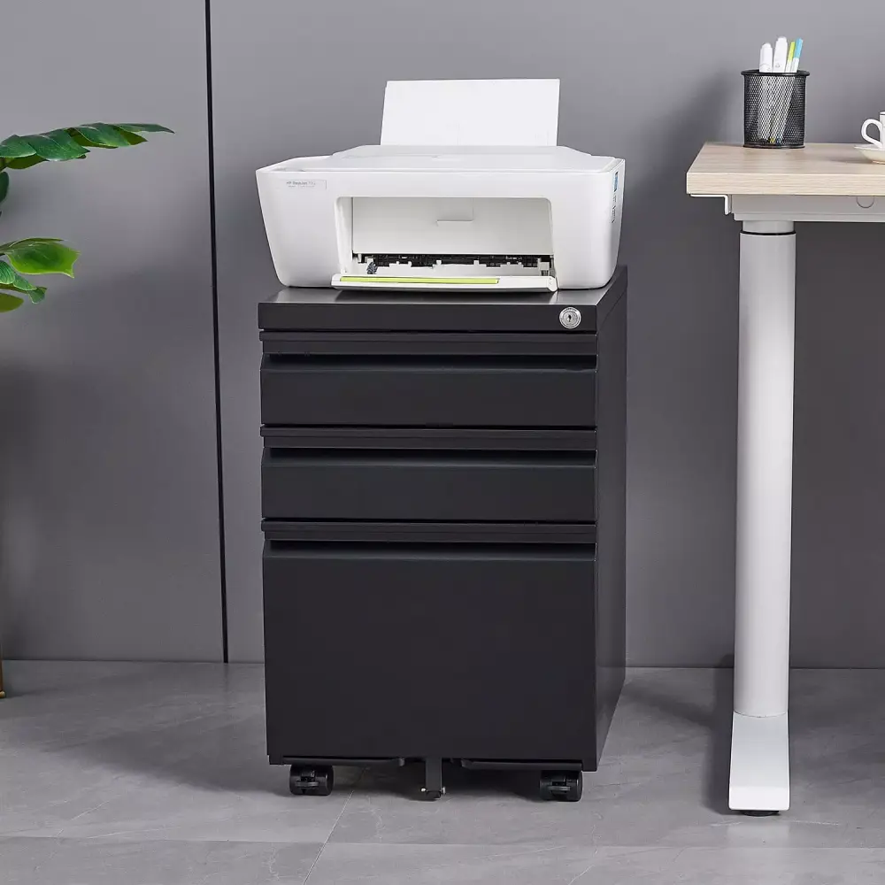 CoSoTower 3 Drawer Mobile Locking File Cabinet Rolling for Letter A4 Size with 5 Wheels in Black