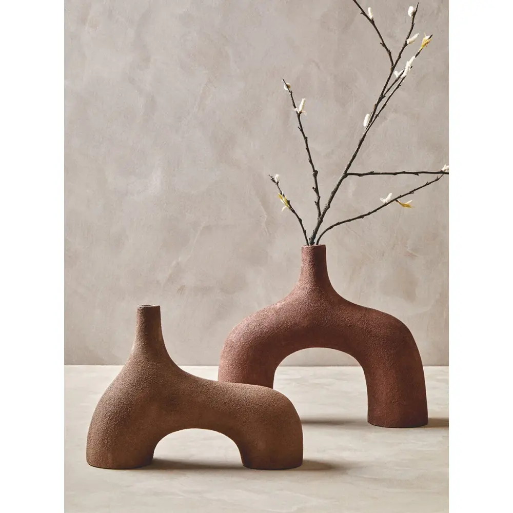 The Dunas small textured ecru abstract vase brings artisanal charm to any space. The slip casting technique ensures durability and a refined finish, while the stretch design seamlessly adapts to various floral arrangements.