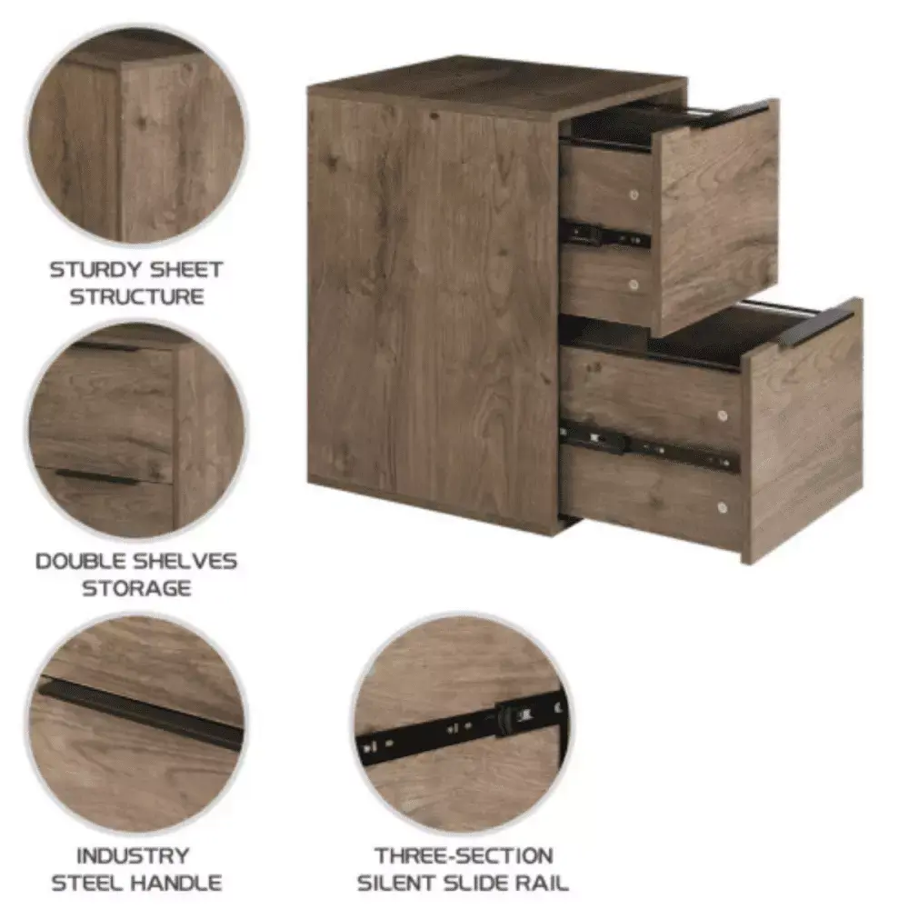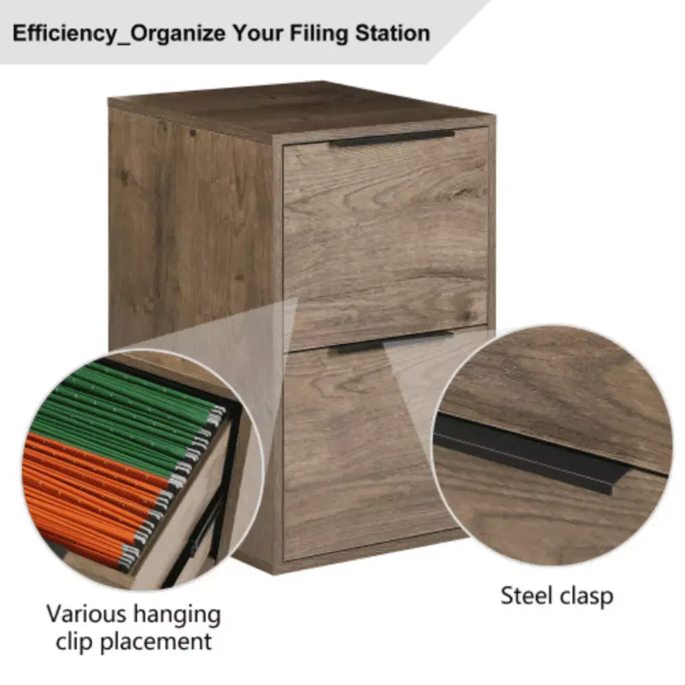 This file cabinet features 2 deep drawers that are perfect for hanging your file documents.The 2 spacious drawes allow you to store letter-sized documents and can support up to 50lbs.Spacious drawes provide room for letter-size hanging files and all of your office storage needs. Smooth Slide suspension allows for a quiet drawer opening.Decorative handles give you easy access to drawer that hold letter-sized file.