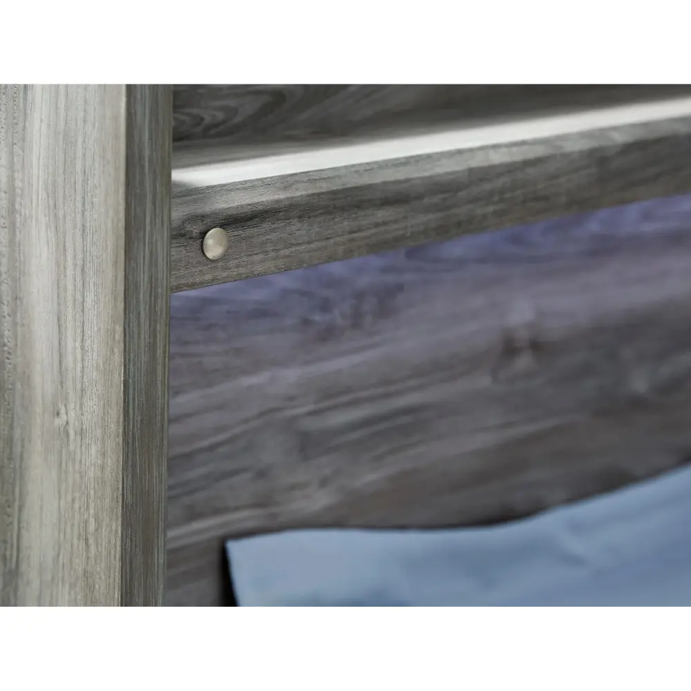 Rest in the casually cool style of this extensive panel bed. Its driftwood and smoky finish and cool LED lighting give this bed an easy-going vibe perfect for setting the scene of a relaxed getaway. Clean lines and modern handles provide a fuss-free look. Mattress and foundation/box spring available, sold separately.