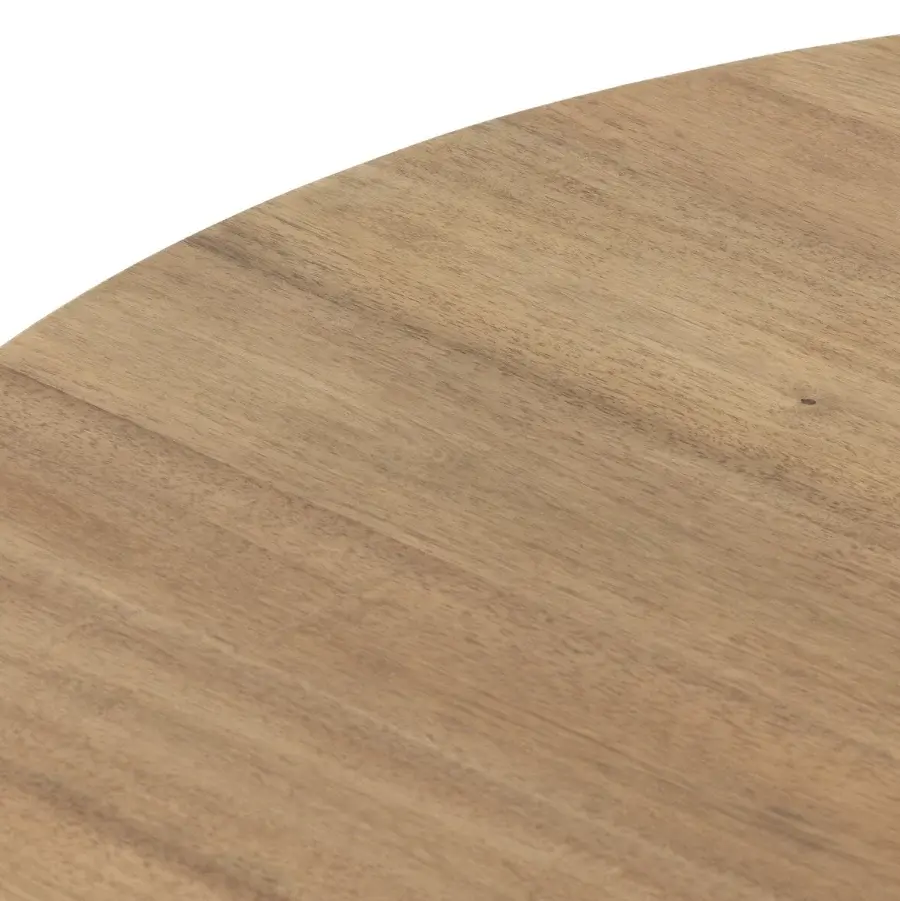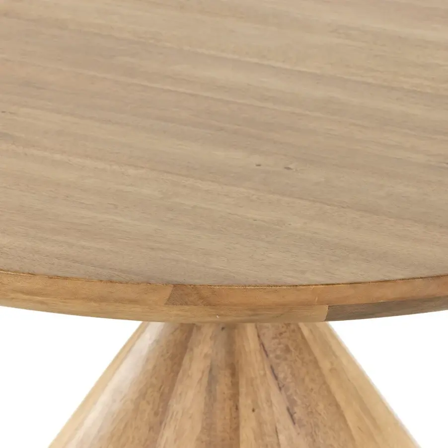 A sculptural showstopper inspired by Italian design. Finished in a smoked honey, a cone-tapered parawood base supports a rounded countertop separated by honed white-finished marble detailing. Seats four comfortably.