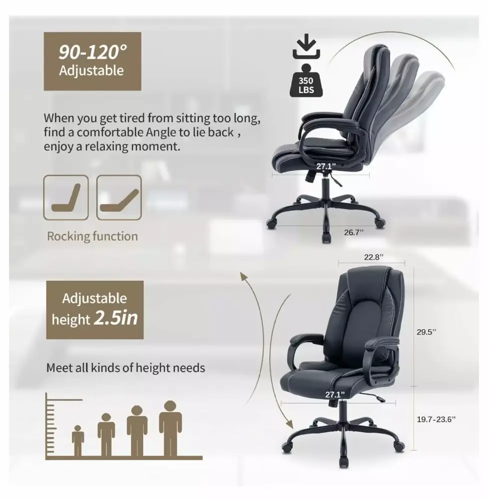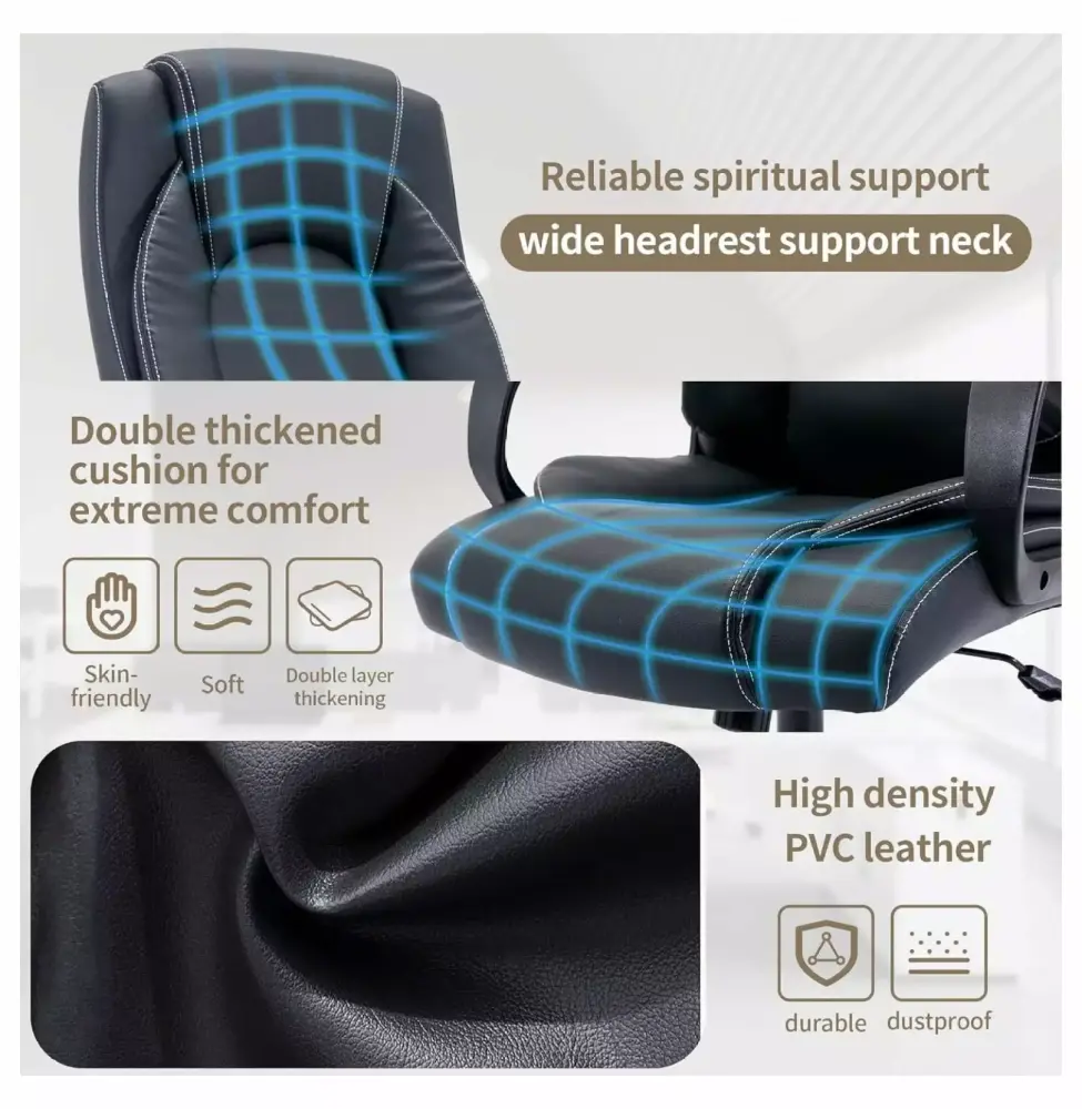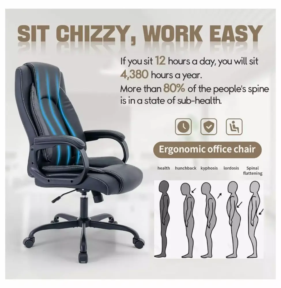 XylehRExecutive Office Chair.Comfortable Ergonomic Home Office Desk Chairs.Computer Leather Office Chair with Lumbar Back Support. PVC Leather Desk Chairs with Wheels