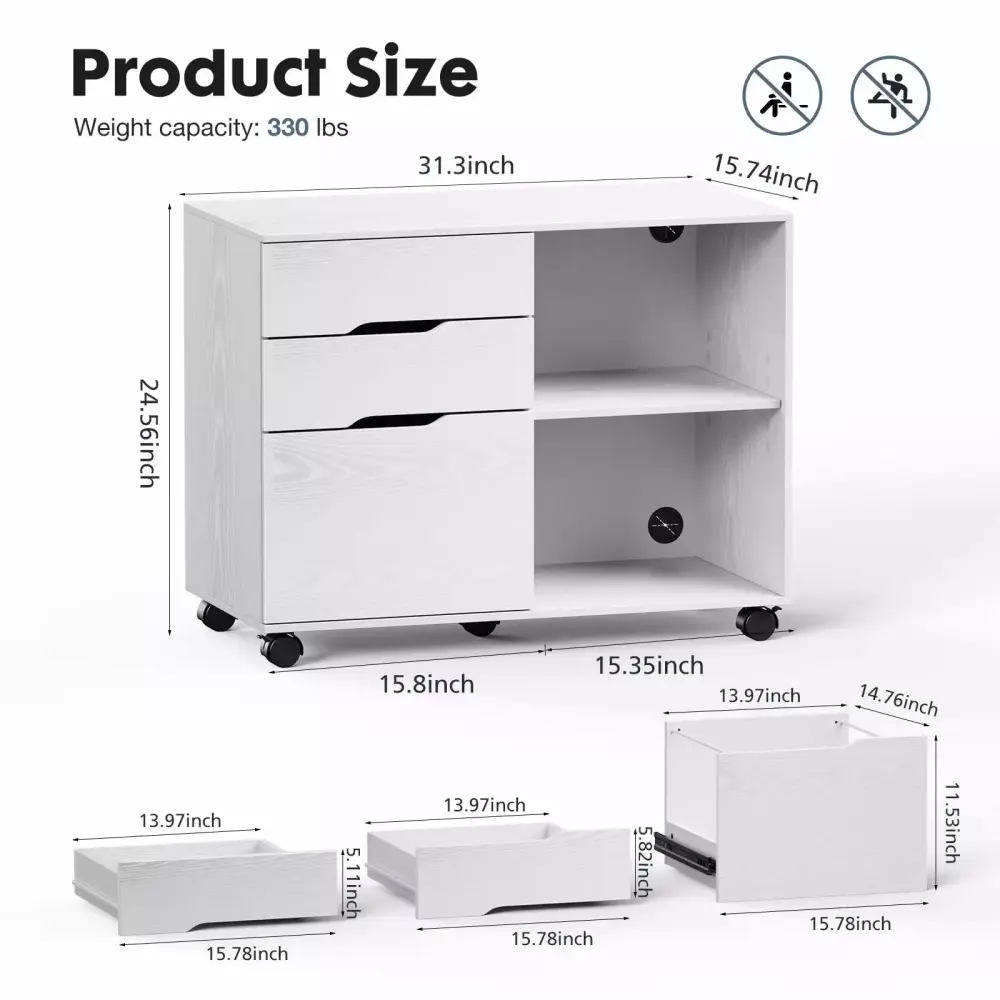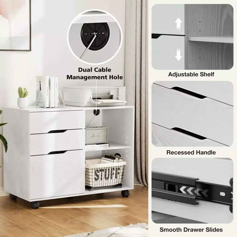 Filing Cabinet 3 Drawer Mobile Lateral File Cabinet Printer Stand Open Shelves Kids Room ANCEL