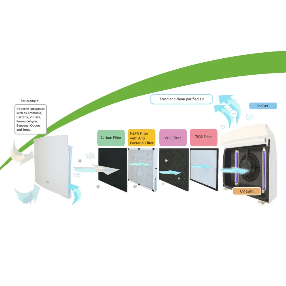 - Filter Lifetime ( HEPA / VOC / TiO2) – 180 – 365 Days