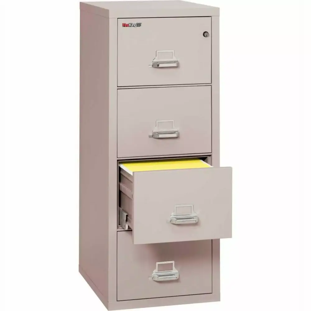 - Protect your valuable documents with the FireKing vertical file cabinet. With a space-saving. fireproof design. this legal-size. parchment. 4-drawer cabinet makes a great addition to your business.