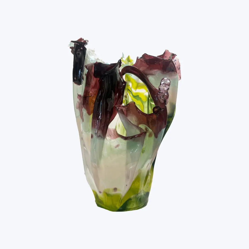Discover the Garden Teacup Bioplastic Vessel by Caroline Zimbalist. This extraordinary piece is hand-cooked and sculpted by Caroline using her proprietary recipe of biodegrades naturally and natural materials. Lightweight, expressive, and completely unique, this striking sculpture brings avant-garde beauty to daring spaces. The vessel comprises a removable borosilicate glass insert, allowing it to without risk hold water and fresh flowers. Do not add water directly into the vessel. Handcrafted in the USA.