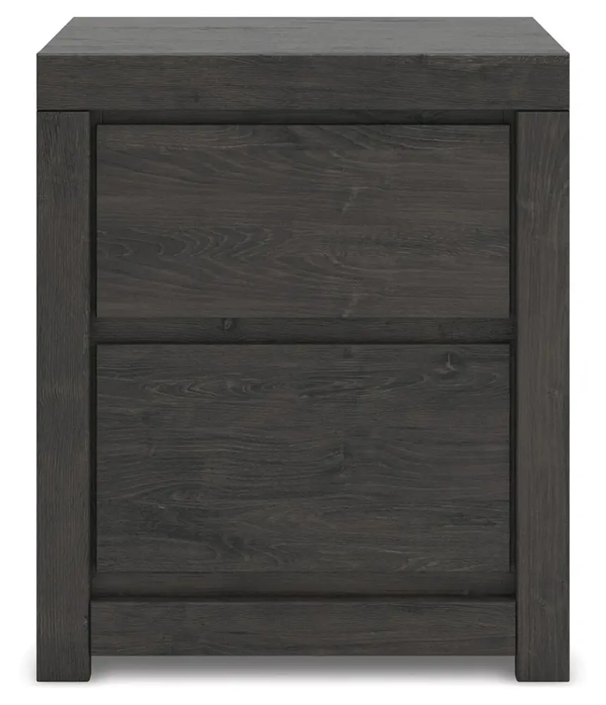 Find serene simplicity in the clean lines and dark neutral tones of this nightstand. It’s a sincere approach to modern elegance, giving you high style at a great value. A sleek hardware-less design creates a fuss-free look. Winding down before bed? Store essentials close with the nightstand’s smooth-gliding drawers and USB charging.