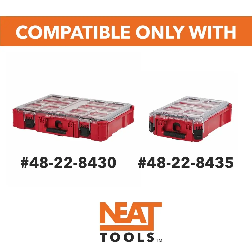 Neat Tool’s divider bins are perfect for adding surplus storage space and organization to your Milwaukee Organizer bins. These are for the larger bins only.
