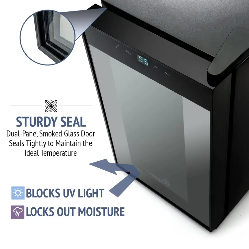 The Ivation Wine Refrigerator keeps your wine at the correct & consistent temperature and reliable environment, protecting the wine from exterior lights and elements, It is specially built to have zero vibration, so the wine can be aged and stored properly, enabling it to preserve and develop its delicious flavor, color and aroma. Place this thermo electric wine refrigerator in any room where you like to have social parties or nice, quiet evenings. Enjoy having a small wine fridge close by where you can archive your favorite sparkling wine or champagne.