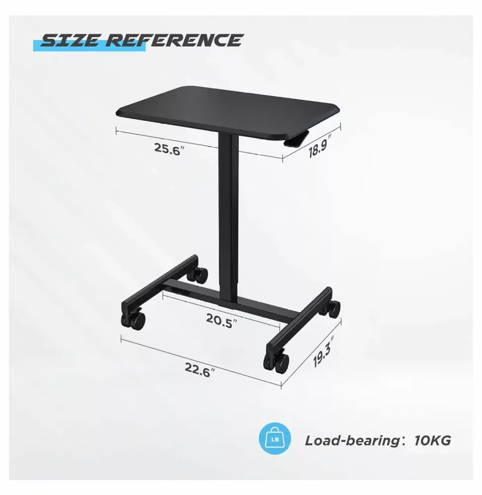 Why Choose Our Mobile Laptop Standing Desk Details of Mobile Rolling Laptop Standing Desk PACKAGE Mobile Laptop Standing Desk Assembly parts package User Manual SPECIFICATIONS SIZE Desktop Size Length 25.6 in Width 18.9 in Holder Size Length 22.6 in Width 19.3 in Height Min 28.7 in Max 42.9 in Multiscenario use It is great for professional workplaces like offices. art and music studios. libraries. dental clinics. and doctors’ offices.