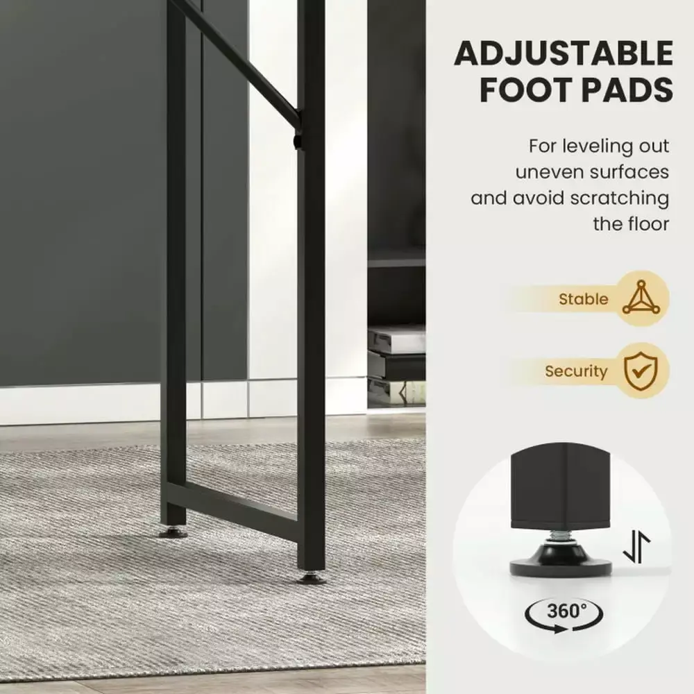 - Reliable Workstation: Both MDF desktop and thick steel frame greatly improve the overall sturdiness and perfect load capacity. What’s more. coming with adjustable footpads. four metal support legs effectively help the computer desk stay stable on different grounds.