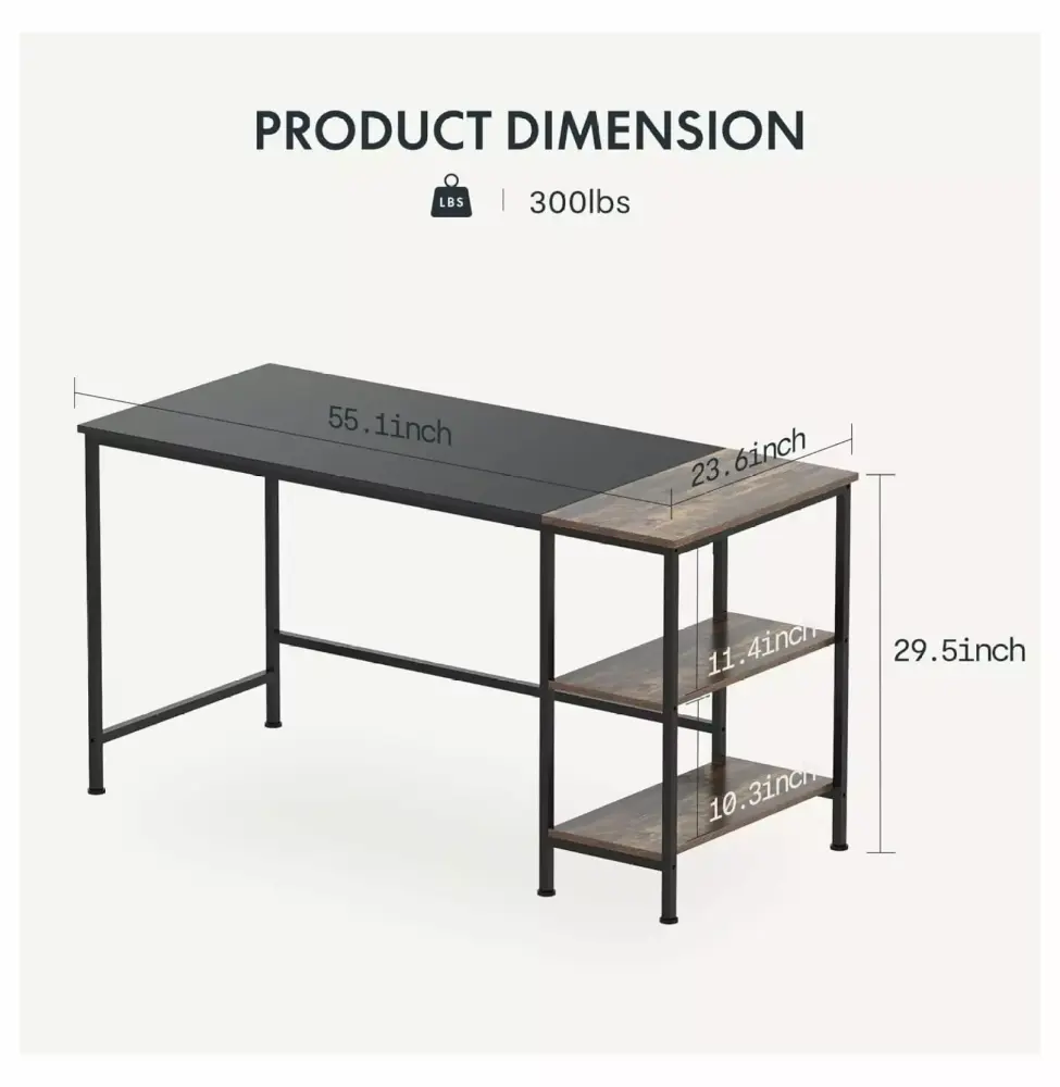 - STURDY & STABLE This modern desk is made of a thicker metal frame and sturdy wood for stability and durability. and the additional metal fixing bar makes the whole desk’s weight capacity up to 300 lbs.