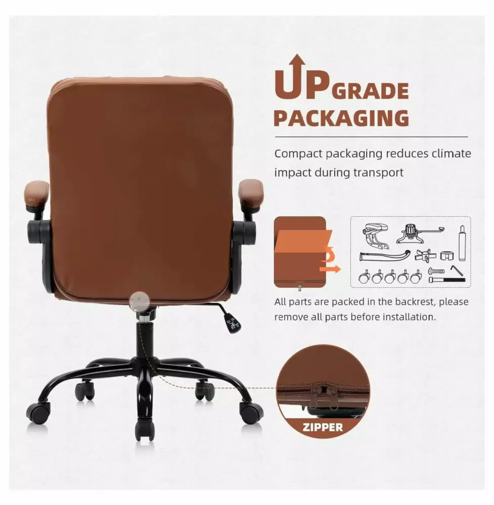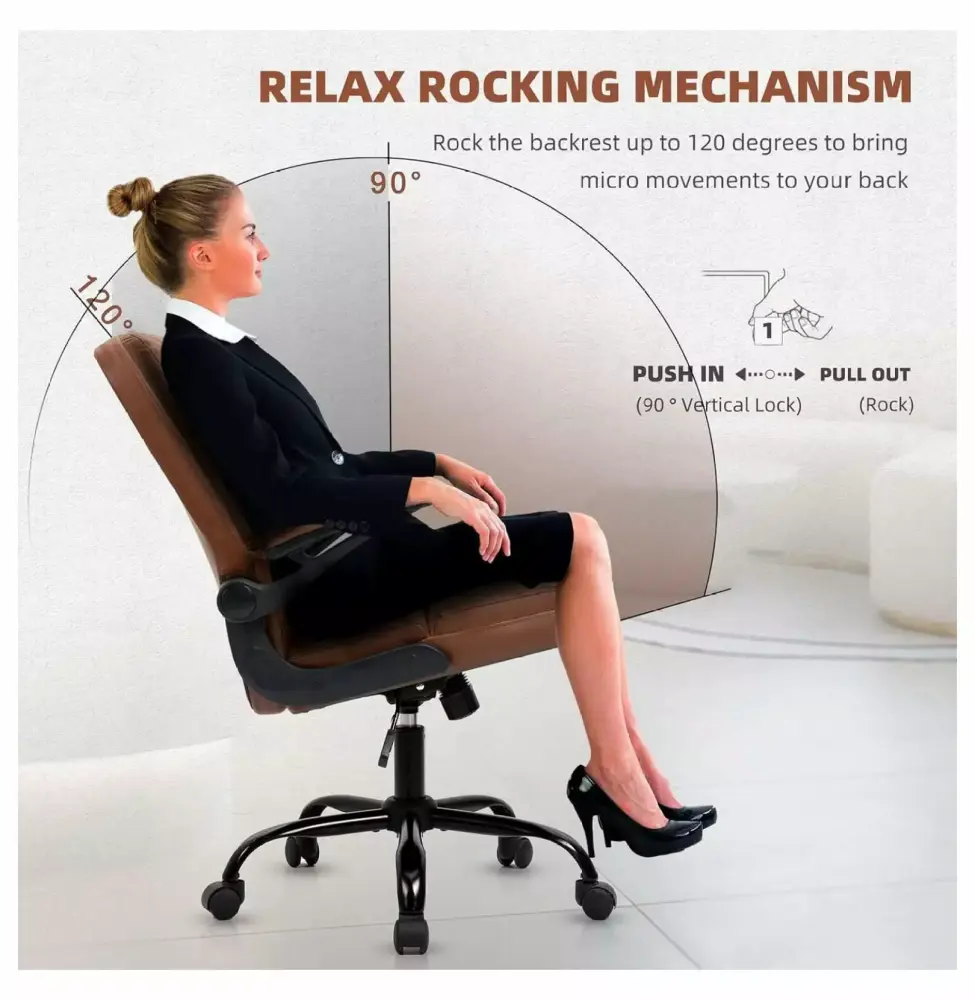 - Comfort and Health : The small computer chair is ergonomically designed with a high backrest made of PU Leather. which perfectly adapts to the back. It can be tilted back 120 to reduce fatigue and stress. The executive office chair with folding armrests provides ample support for hands and can be folded and stored under the desk when needed. making the most of any space.