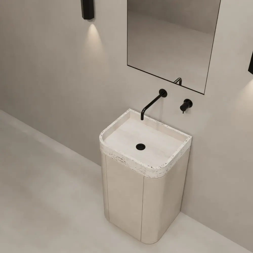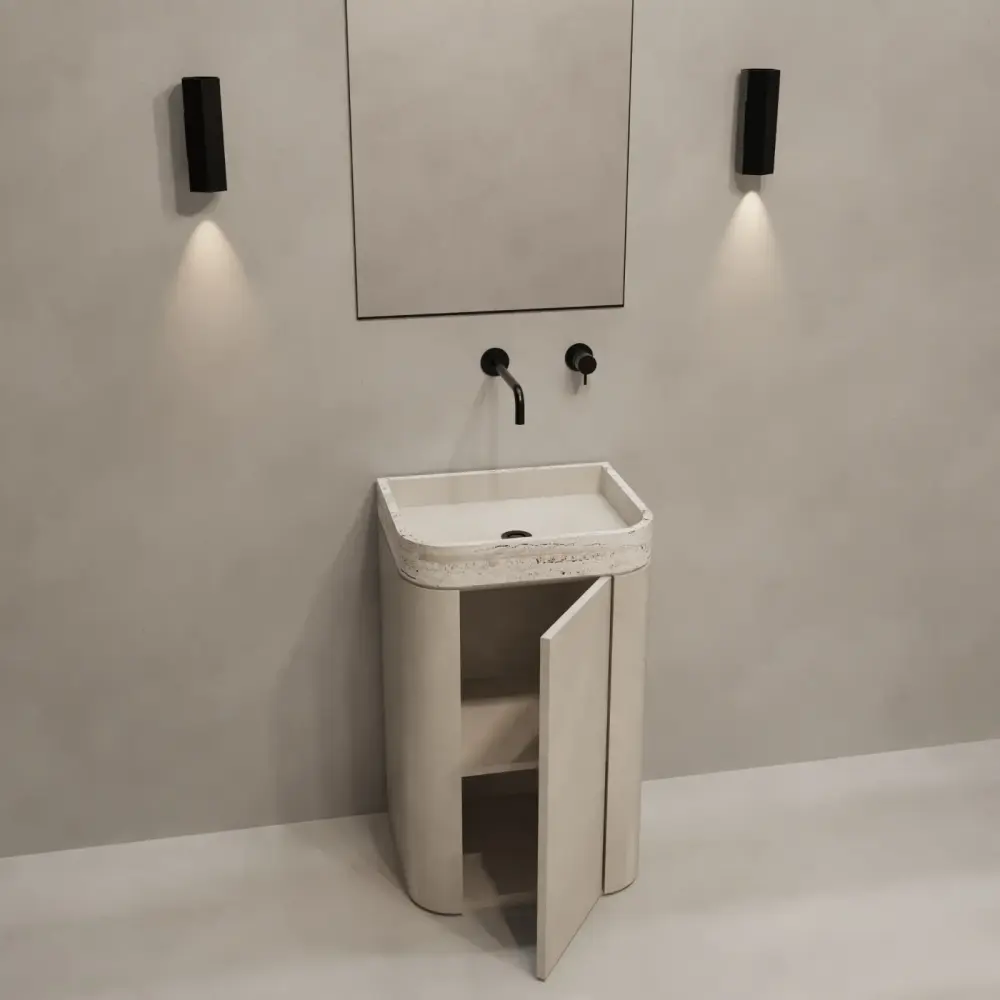 Mortexlook hand wash basin – Snow travertine sink – Marceau – With shelves