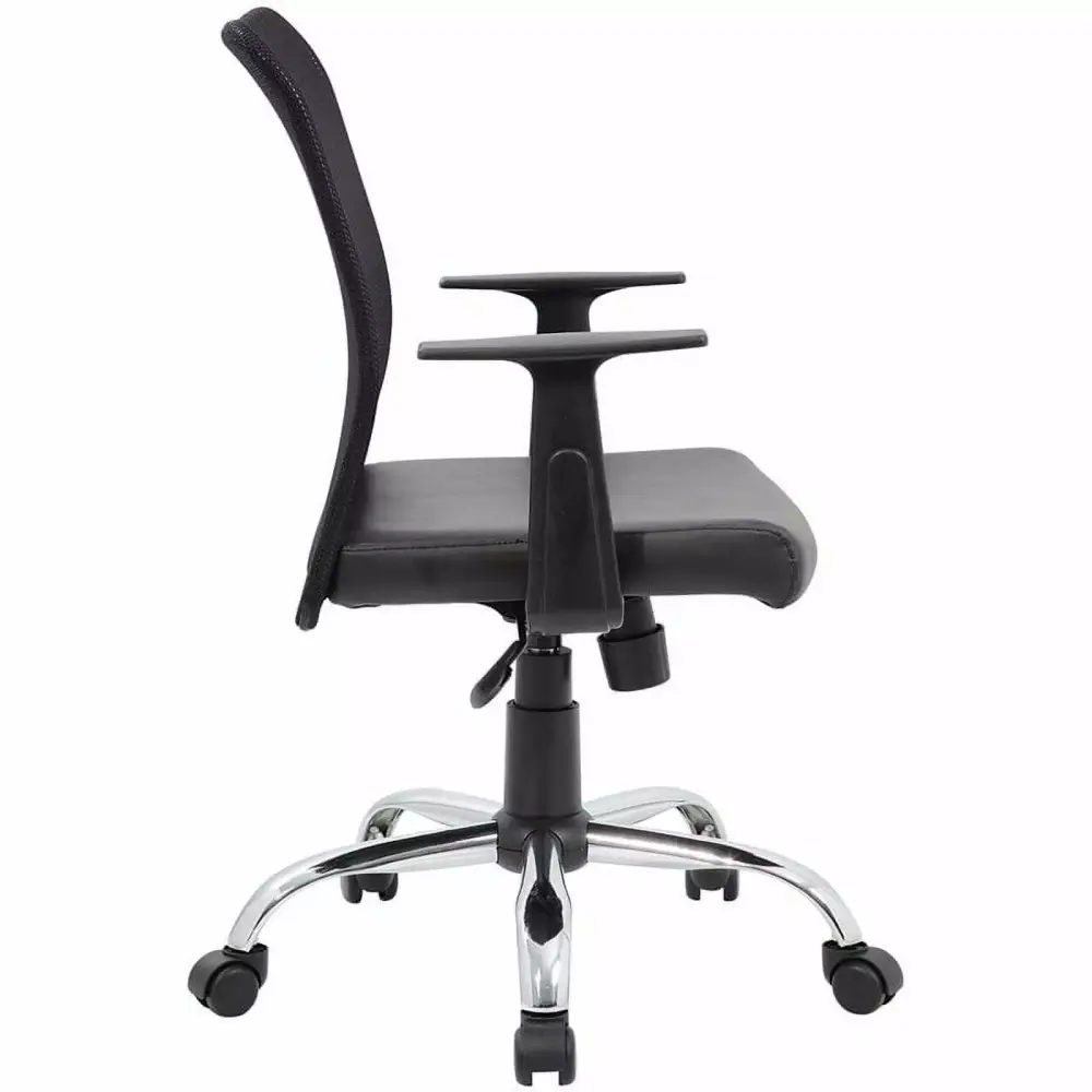 Looking for a simple office chair that doesn’t skimp on reliability Maybe you need it for a small space and able to tuck under your desk Sensible. adjustable and built to last longer than this sentence…way longer. Then check out the B6116C-CS Mesh Basics+ Task Chair (available in your preference with or without arms).With easy-to-use pneumatic controls. you can adjust the seat height for an ergonomic fit and varying workstation surfaces and easily lock it in place. Find your ideal tilt tension for a perfect rock and recline. Mesh back designed to prevent body heat and moisture build up. We’ve upgraded the seat with upholstrey and ample cushioning in our contoured seat design encourage proper circulation when at your desk or in front of the computer for long stretches of time. Rest your upper body on the fixed T-arms. And if you need to move. dual-wheel casters on a sturdy 25 chrome base will ensure smooth-rolling mobility from one area of your home or office to another.
