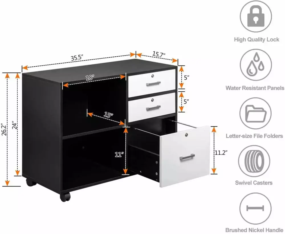 LARGE STORAGE SPACE – Features 3 spacious drawer and two open shelves. The bottom drawer provides files hanging space and the two small drawers on top are perfectly sized for pens/pencils. post-it notes. office supplies. address labels. stamps. etc. Two spacious Shelves provide extra storage space. Perfect for home office or any office area