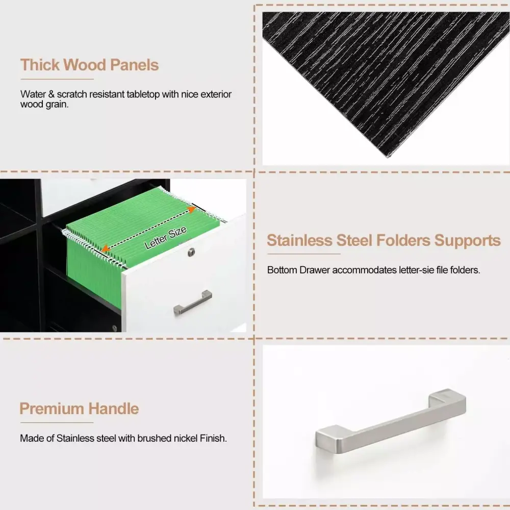 LARGE FILING DRAWER – Don’t need to worry about the two file rod cannot support the weight of many files and bent easily anymore! The two folders supports in the bottom drawer are made of stainless steel material which has excellent strength. The bottom drawer accommodates letter size file folders