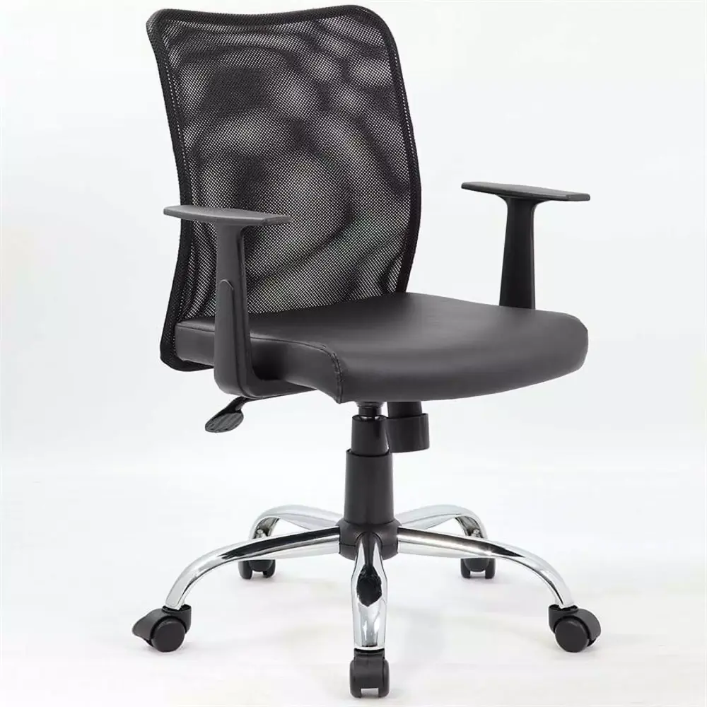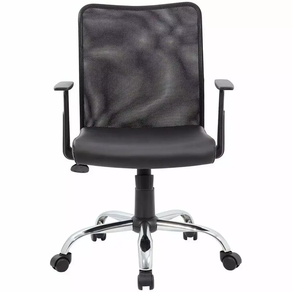 Looking for a simple office chair that doesn’t skimp on reliability Maybe you need it for a small space and able to tuck under your desk Sensible. adjustable and built to last longer than this sentence…way longer. Then check out the Scranton & Co Mesh Task Chair. With easy-to-use pneumatic controls. you can adjust the seat height for an ergonomic fit and varying workstation surfaces and easily lock it in place. Find your ideal tilt tension for a perfect rock and recline. Mesh back designed to prevent body heat and moisture build up. We’ve upgraded the seat with Caresoft upholstrey and ample cushioning in our contoured seat design encourage proper circulation when at your desk or in front of the computer for long stretches of time. Rest your upper body on the fixed T-arms. And if you need to move. dual-wheel casters on a sturdy 25 chrome base will ensure smooth-rolling mobility from one area of your home or office to another.