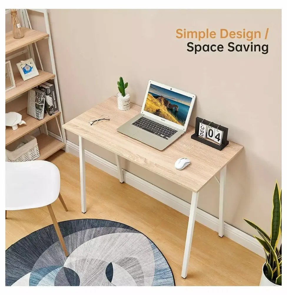 - SIMPLE DESIGN & SPACE SAVING : The writing computer desk unifies a firm metal frame with an appealing oak white for a charming display. This computer desk brings you a modern style desk ideal for any modern home. Moreover. the desk’s size is suitable for bedroom. living room. kitchen. children’s room. office and will not occupy too much space in the room.
