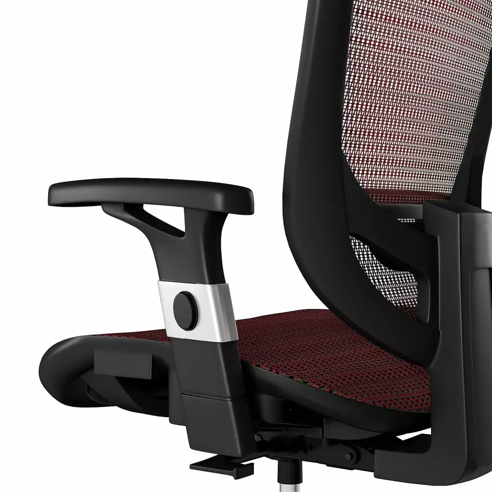 Features adjustable seat and arm height. height- and angle-adjustable headrest. lumbar support. tilt tension. and tilt lock.