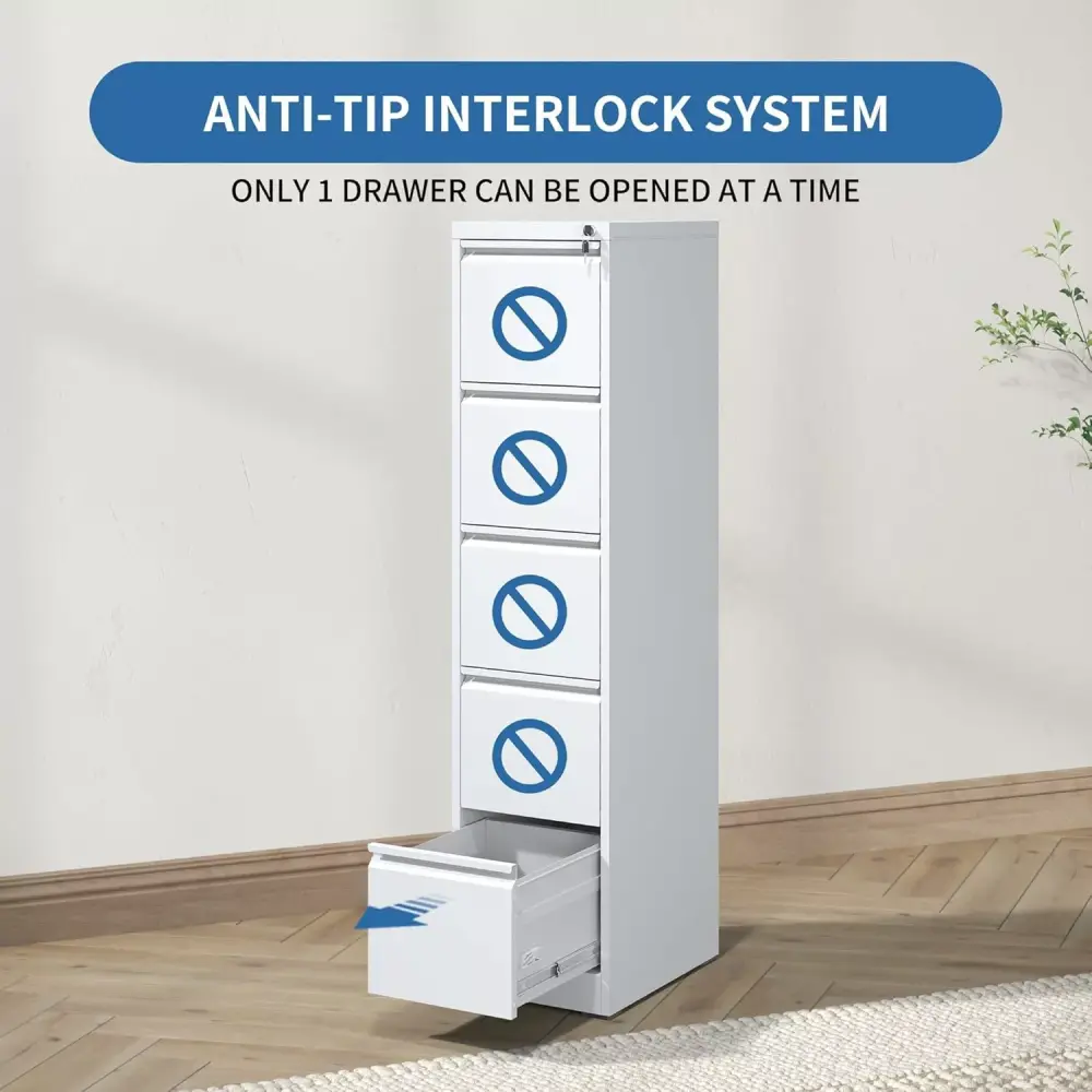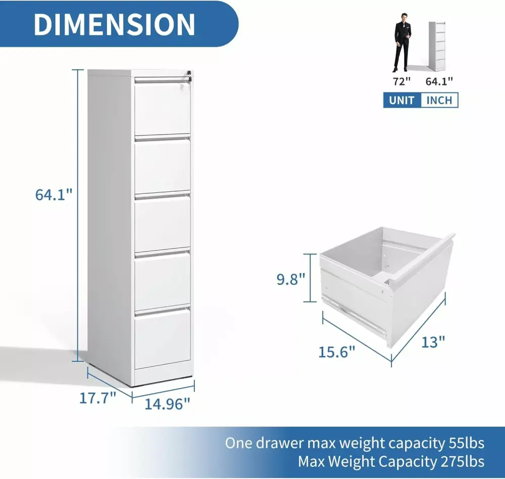 White 5 Drawer Vertical File Cabinet Lock Heavy Duty Metal Office Storage DEYUDE